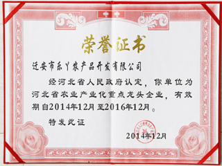 2014年 河北省農(nóng)業(yè)產(chǎn)業(yè)化重點(diǎn)龍頭企業(yè)